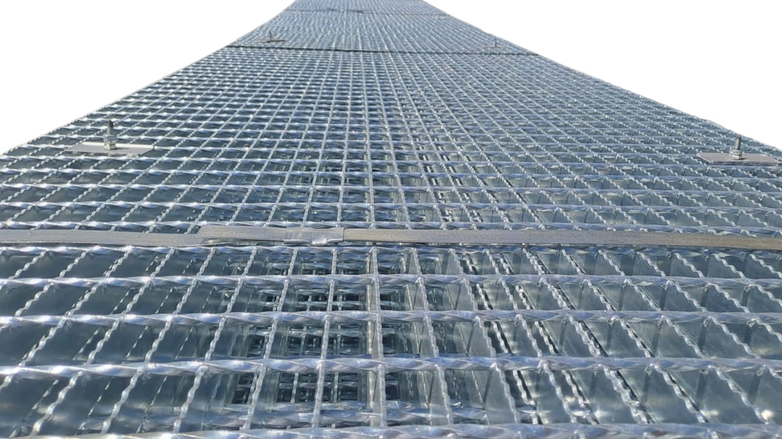 Rejillas metálicas grating tipo S dentadas antideslizantes fabricadas en acero.